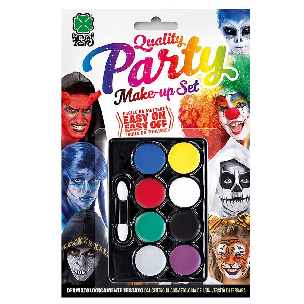 Μεταμορφώσου στον αγαπημένο σου χαρακτήρα με την παλέτα μακιγιάζ Quality Party! Διαθέτει 8 ζωντανά χρώματα και ειδικό πινέλο εφαρμογής, προσφέροντας μια εύκολη και ασφαλή λύση για εντυπωσιακά face painting σε αποκριάτικα πάρτυ, θεατρικές παραστάσεις και εκδηλώσεις.