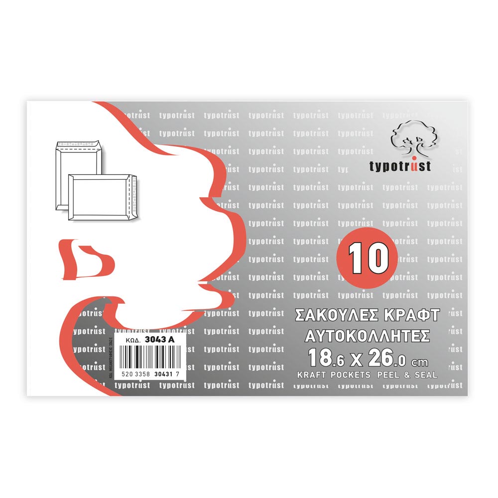 ΦΑΚΕΛΟΣ ΑΛΛΗΛΟΓΡΑΦΙΑΣ ΣΑΚΟΥΛΑ ΚΡΑΦΤ ΑΥΤΟΚΟΛΛΗΤΟΣ 18,6×26 ΕΚ. ΠΑΚΕΤΟ 10 ΤΕΜΑΧΙΑ TYPOTRUST