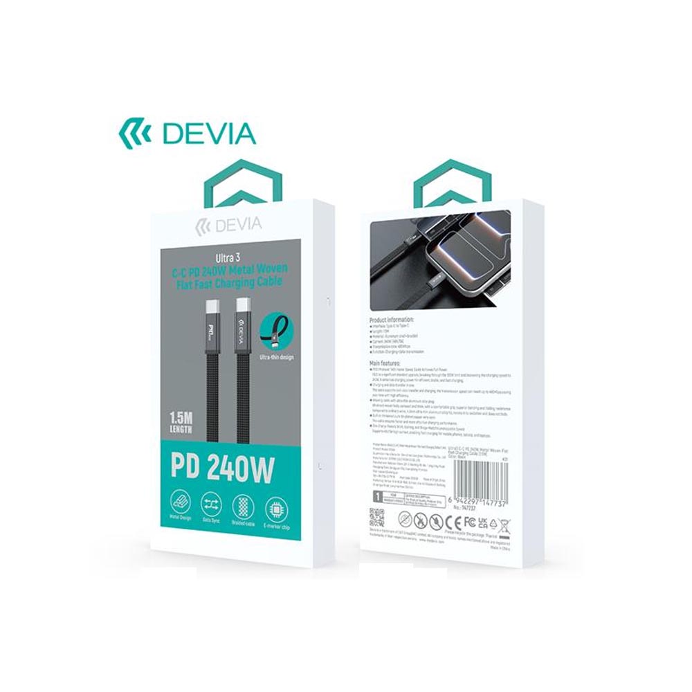 Εξασφάλισε κορυφαίες ταχύτητες φόρτισης με το Devia Ultra3 Metal Woven Flat Cable. Με υποστήριξη Power Delivery έως 240W, ανθεκτική μεταλλική πλέξη και flat σχεδιασμό που δεν μπερδεύεται, είναι το ιδανικό καλώδιο για laptops, tablets και smartphones υψηλών απαιτήσεων.