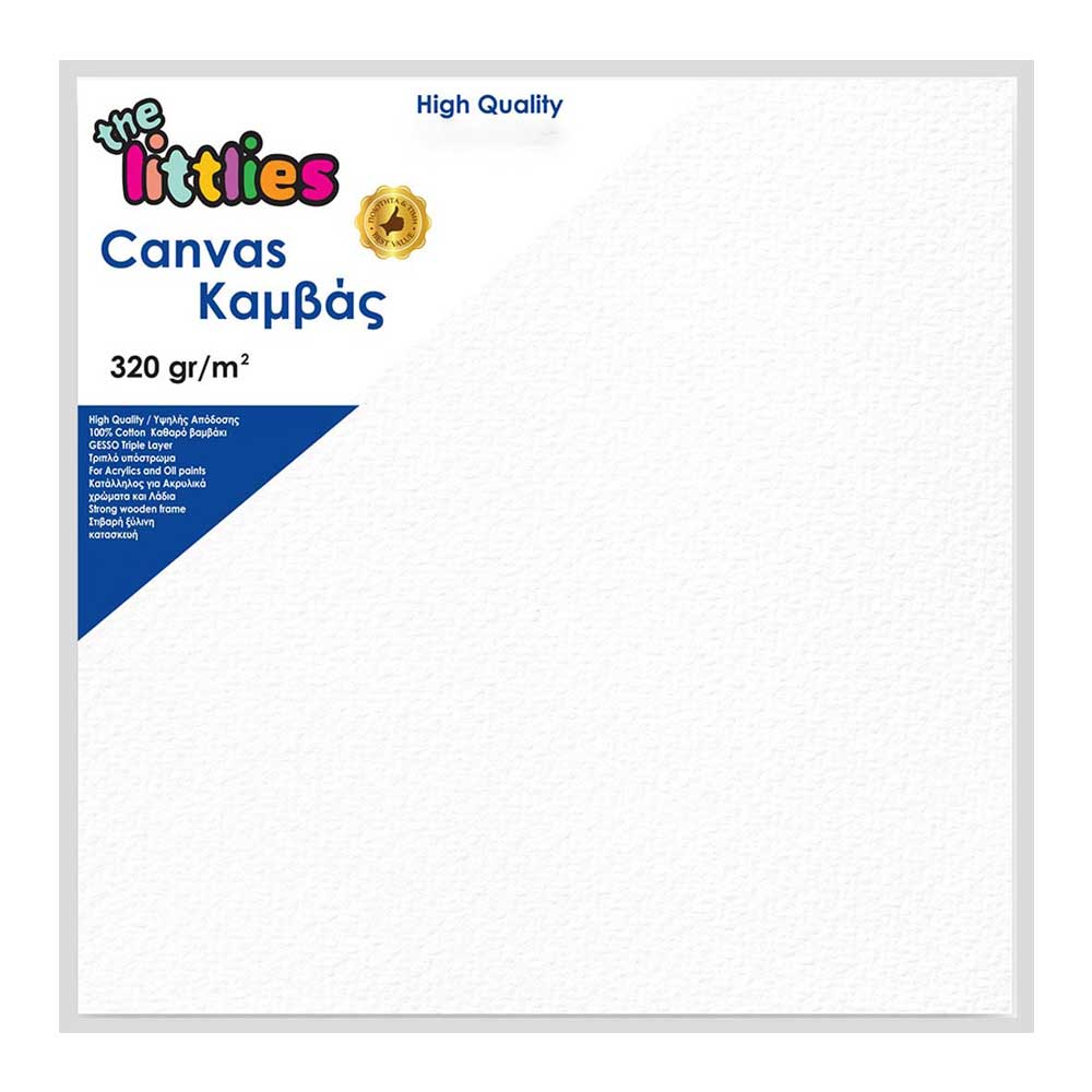 Τελάρο Ζωγραφικής 30x30cm The Littlies 18mm. Τελάρο υψηλής απόδοσης λευκό, με πάχος ξύλου 18mm. Είναι βαμβακερό, με καμβά 320gr ανά τετραγωνικό μέτρο και διαστάσεων 30x30cm.