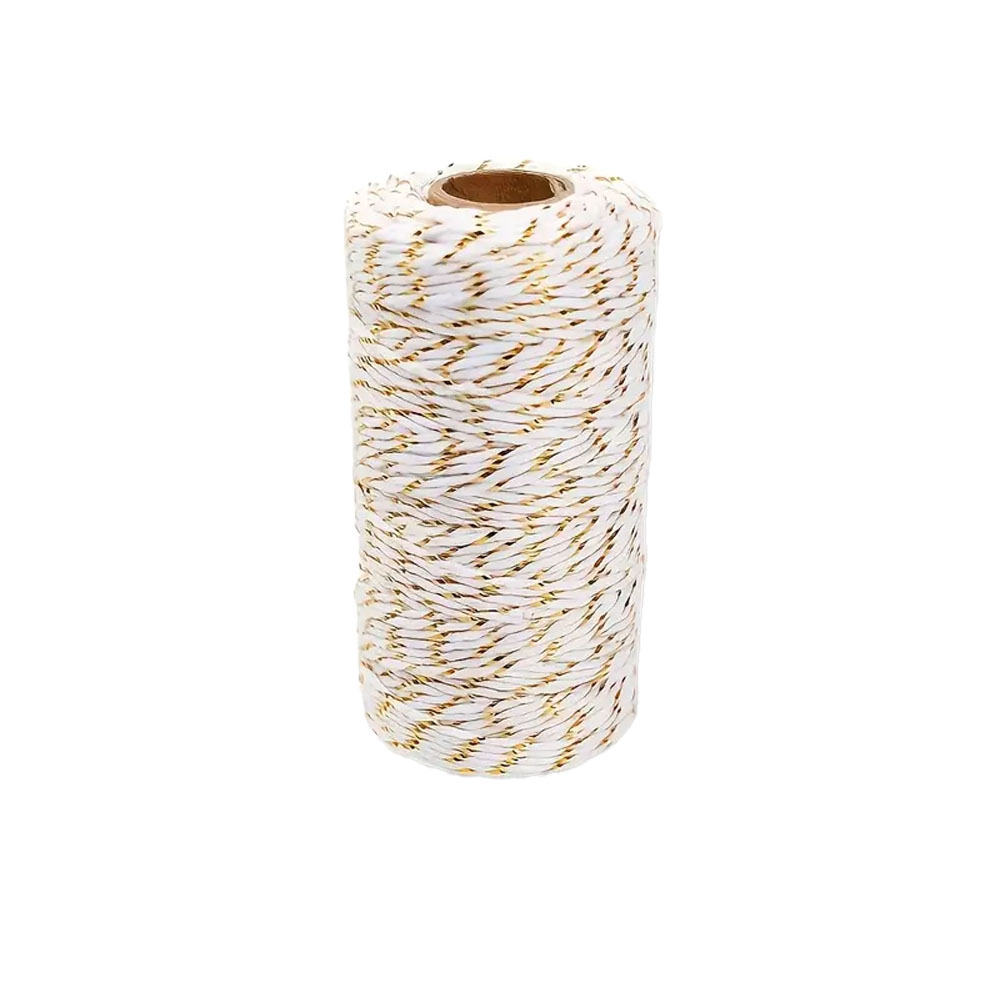 Προσθέστε μια ξεχωριστή πινελιά στα δώρα σας με αυτό το κομψό κορδόνι από βαμβάκι. Το κορδόνι είναι κατασκευασμένο από φυσικό βαμβάκι και είναι ανθεκτικό και άνετο. Χάρη στα κλασικά, εορταστικά του χρώματα χρυσό και λευκό, συνδυάζεται τέλεια με την ατμόσφαιρα των Χριστουγέννων και προσθέτει κομψότητα σε κάθε συσκευασία.