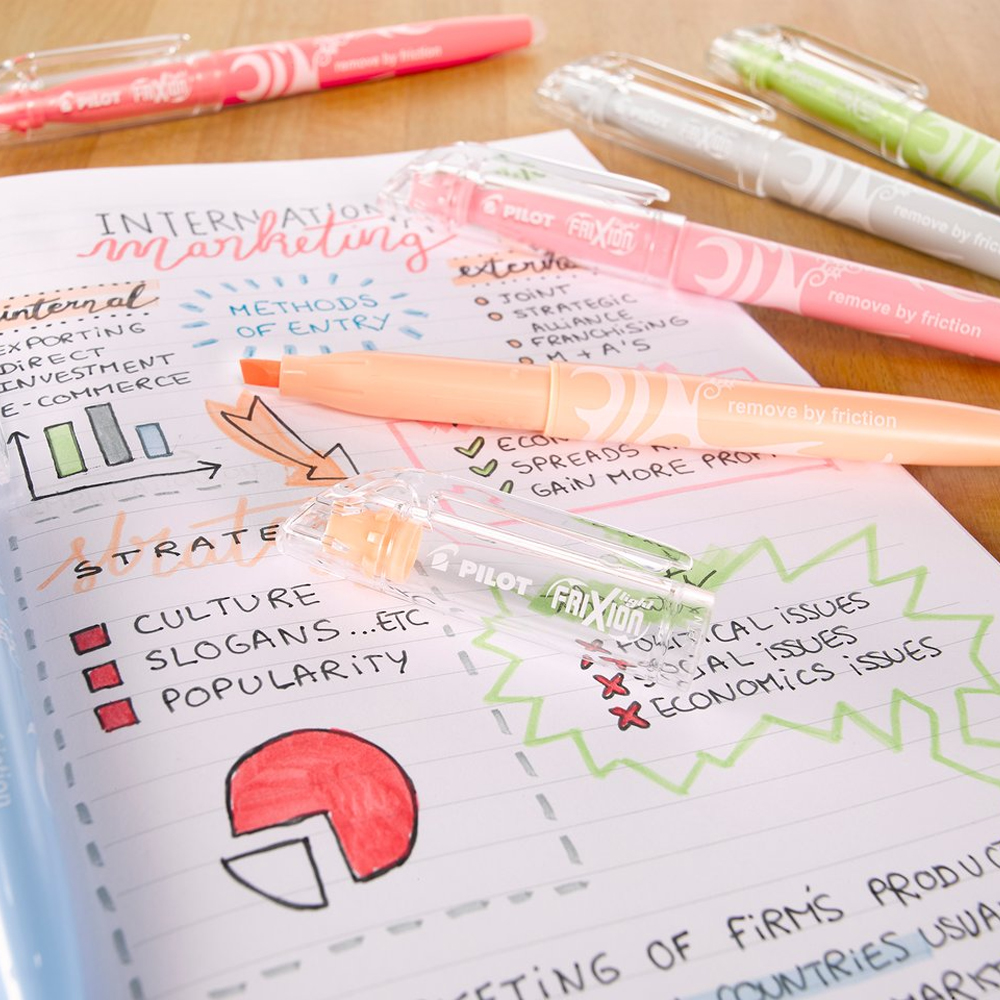 Ποιος είπε ότι δεν μπορείς να υπογραμμίζεις τα βιβλία χωρίς άγχος; Με τους μαρκαδόρους Frixion Light της Pilot δεν υπάρχουν περιορισμοί. Υπογράμμισε ξέγνοιαστα ότι χρειάζεσαι και ότι δε χρειάζεσαι σβήσε το με την ειδική γόμα που βρίσκεται πάνω στο μαρκαδόρο. Το ειδικό μελάνι σβήνει με την θερμότητα που παράγεται από την τριβή της γόμας και εξαφανίζεται μαγικά! Το ίδιο μαγικά επανεμφανίζεται με τη ψύξη.