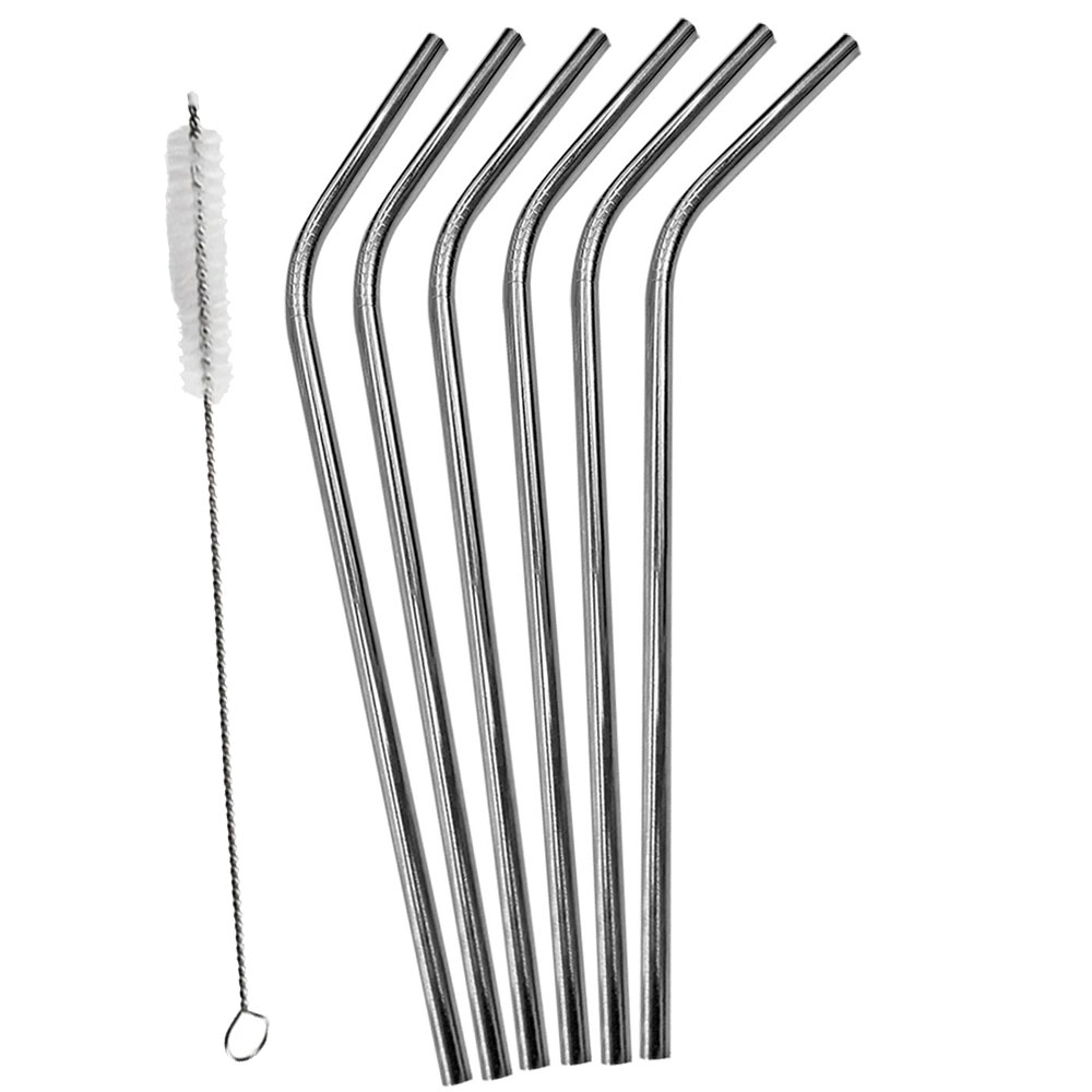 Ολοκληρωμένο σετ από 6 επαναχρησιμοποιούμενα μεταλλικά καλαμάκια με κλίση, σε ασημί χρώμα, μαζί με ειδικό βουρτσάκι καθαρισμού. Η απόλυτη οικολογική λύση για να απολαμβάνετε τα ροφήματά σας με στυλ, μηδενίζοντας τη χρήση πλαστικού.
