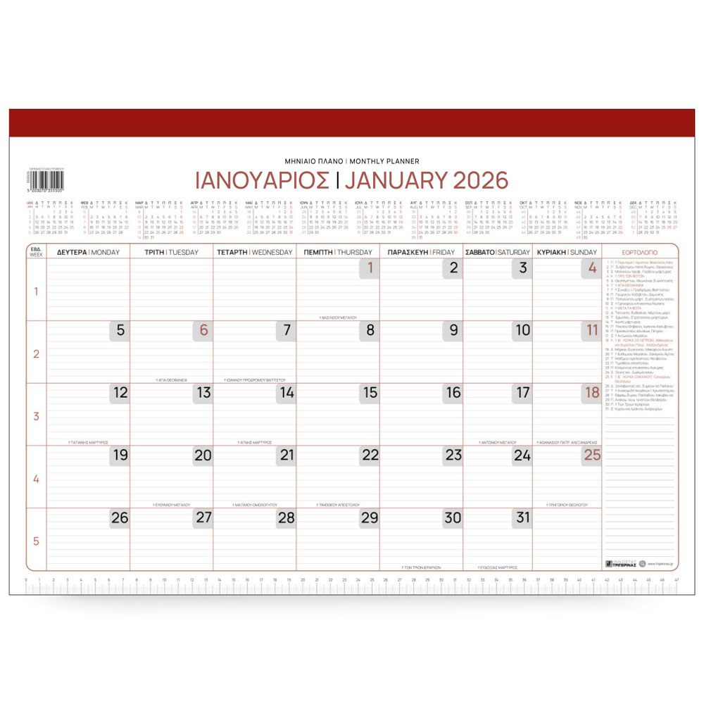 ΜΗΝΙΑΙΟ ΠΛΑΝΟ ΓΡΑΦΕΙΟΥ ΜΕ ΣΚΛΗΡΗ ΠΛΑΤΗ 35X50 2026 INNOSTAT