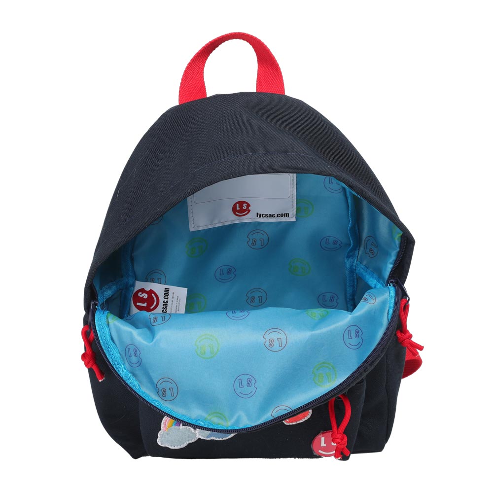 • Πρακτικές Λεπτομέρειες: Εσωτερική επένδυση σε γαλάζιο χρώμα με λογότυπα, ειδική ετικέτα για τα στοιχεία του παιδιού και ανθεκτικά φερμουάρ με κορδόνια για εύκολο χειρισμό.