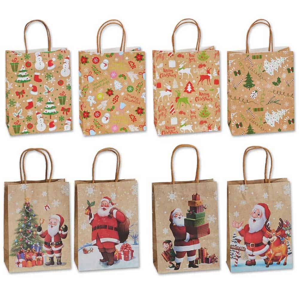 Χριστουγεννιάτικη χάρτινη σακούλα με σχέδια χριστουγεννιάτικη, διαστάσεων 21χ15χ8.