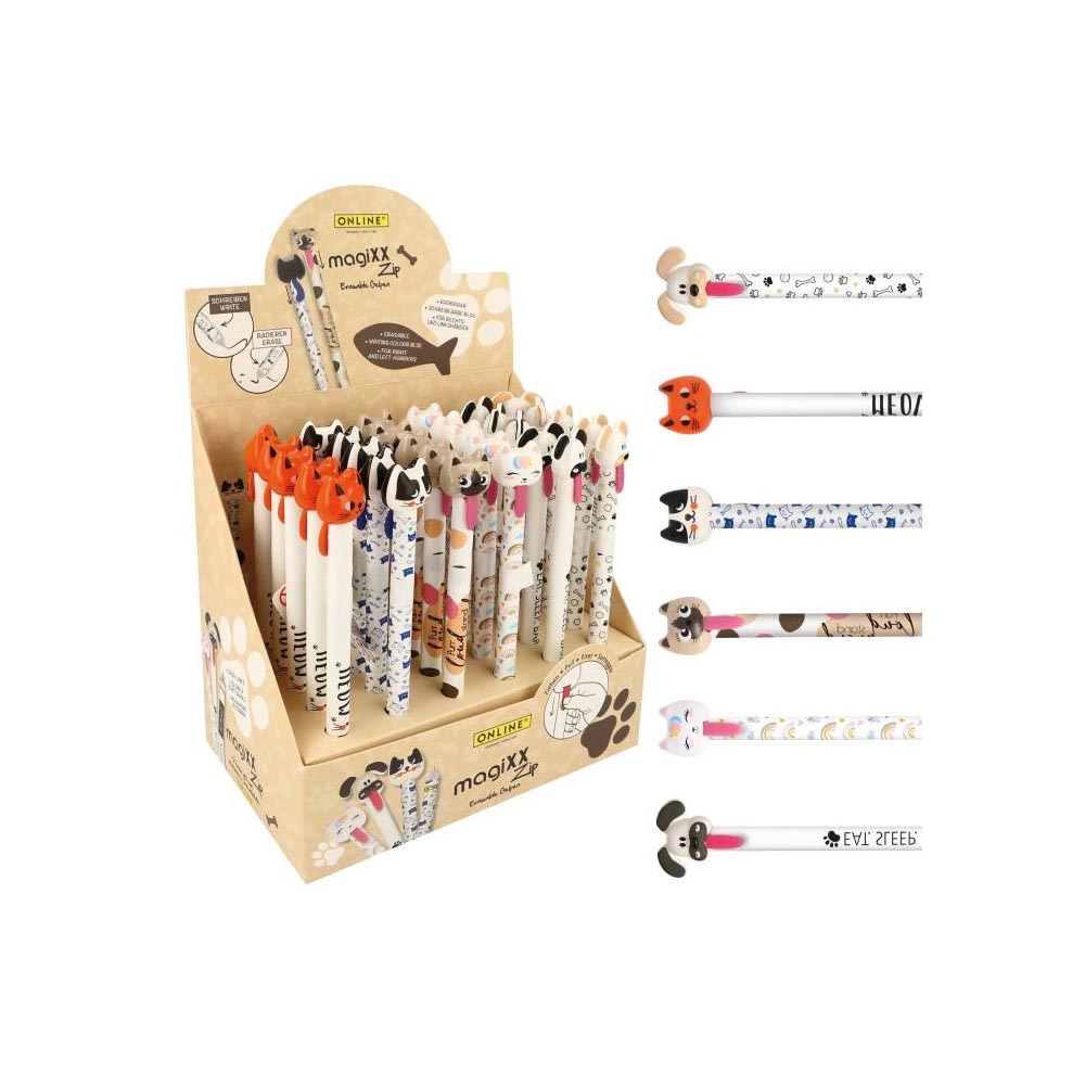 Στυλό gel magiXX Zip της Online που σβήνει! Με ενσωματωμένη γόμα, απαλή γραφή και υπέροχα σχέδια με ζωάκια, είναι το ιδανικό εργαλείο για κάθε μαθητή.