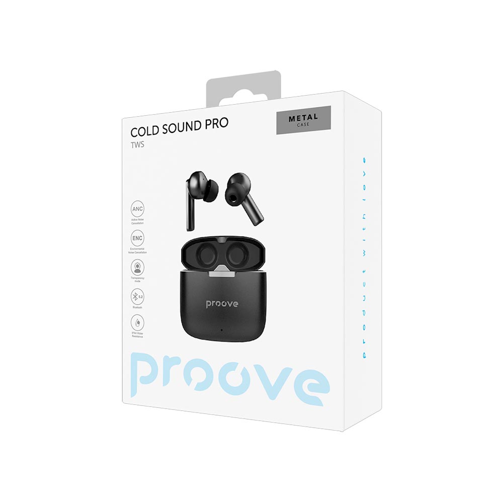 WIRELESS EARPHONES – BLUETOOTH 5.3 ΜΕ ACTIVE NOISE CANCELLATION (ANC) COLD SOUND PRO – BLACK PROOVE